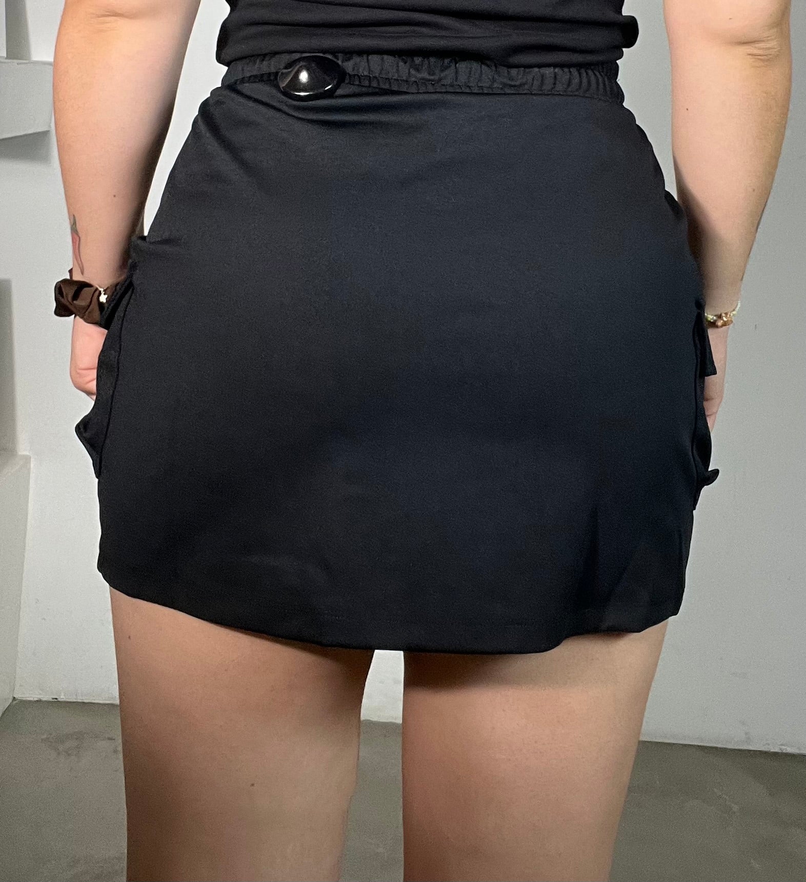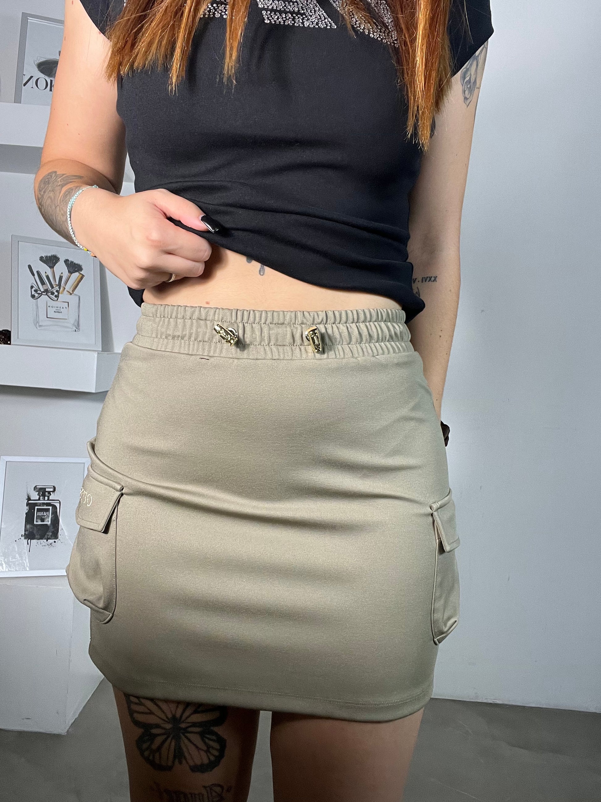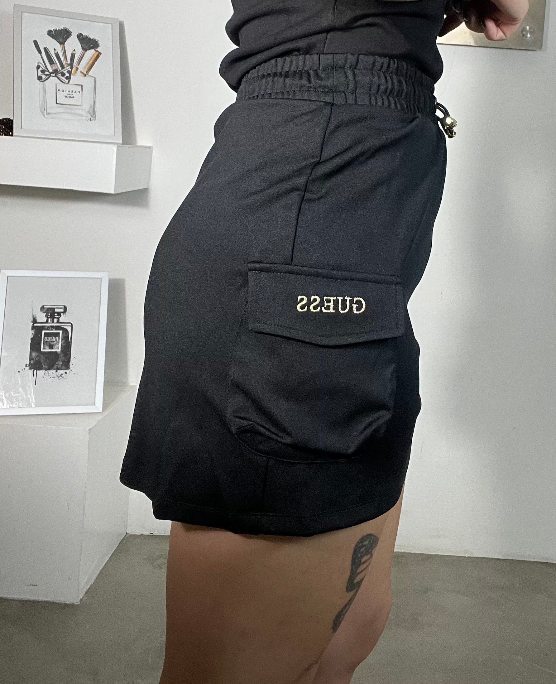 Gonna mini gonna con coulisse e applicazioni tasche laterali, lucida con logo guess