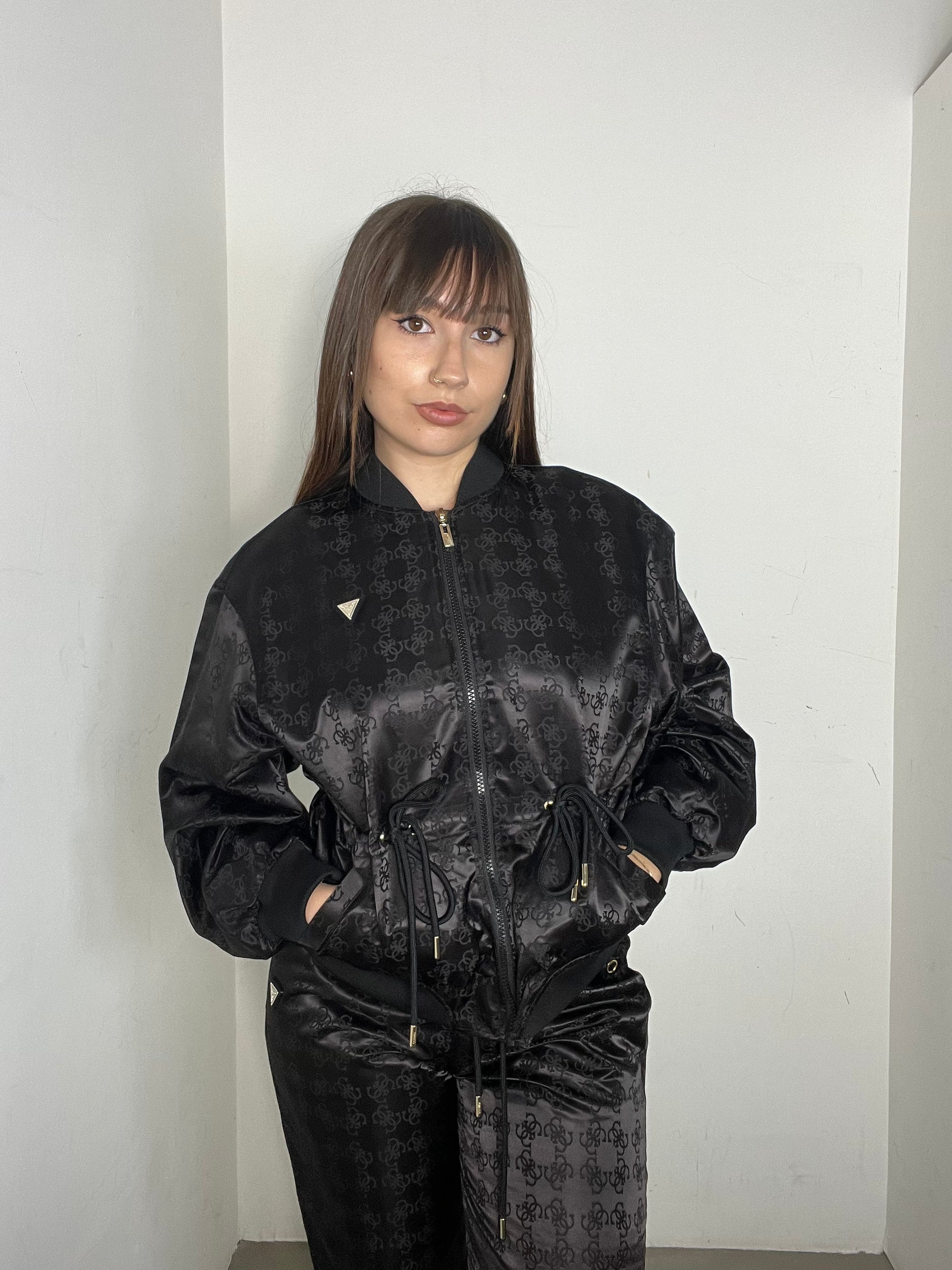 Pantalone acetato con coulisse in vita elastico sotto full logo GUESS