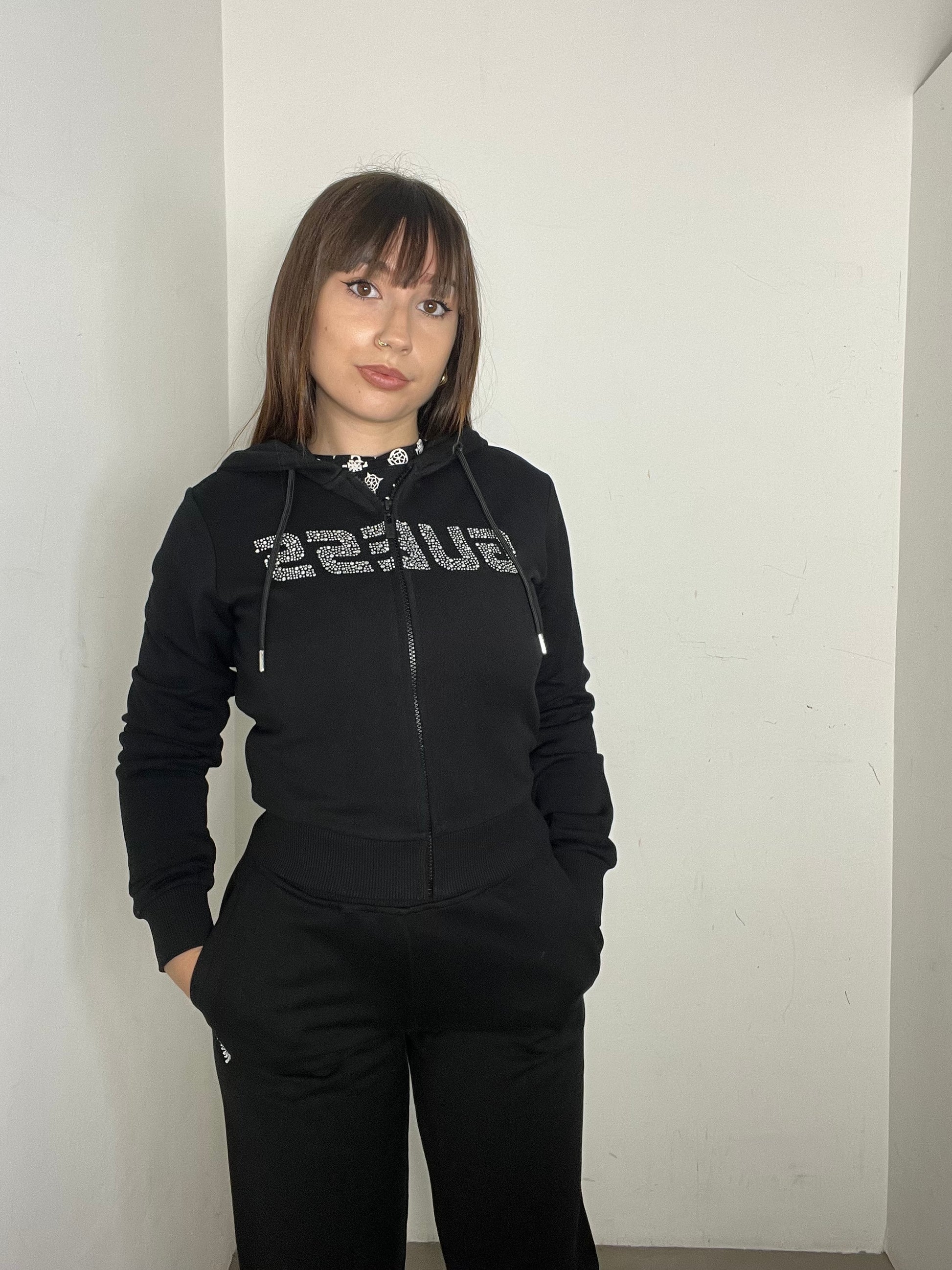 Pantalone sortivo elastico in vita, elastico sul fondo logo con cristalli