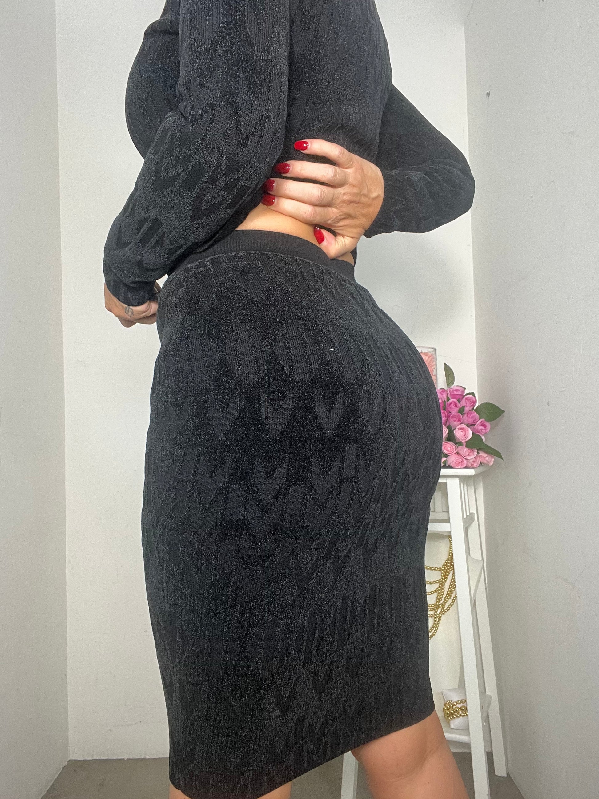 Gonna elegante e confortevole, realizzata in ciniglia elasticizzata che segue le forme con morbidezza.