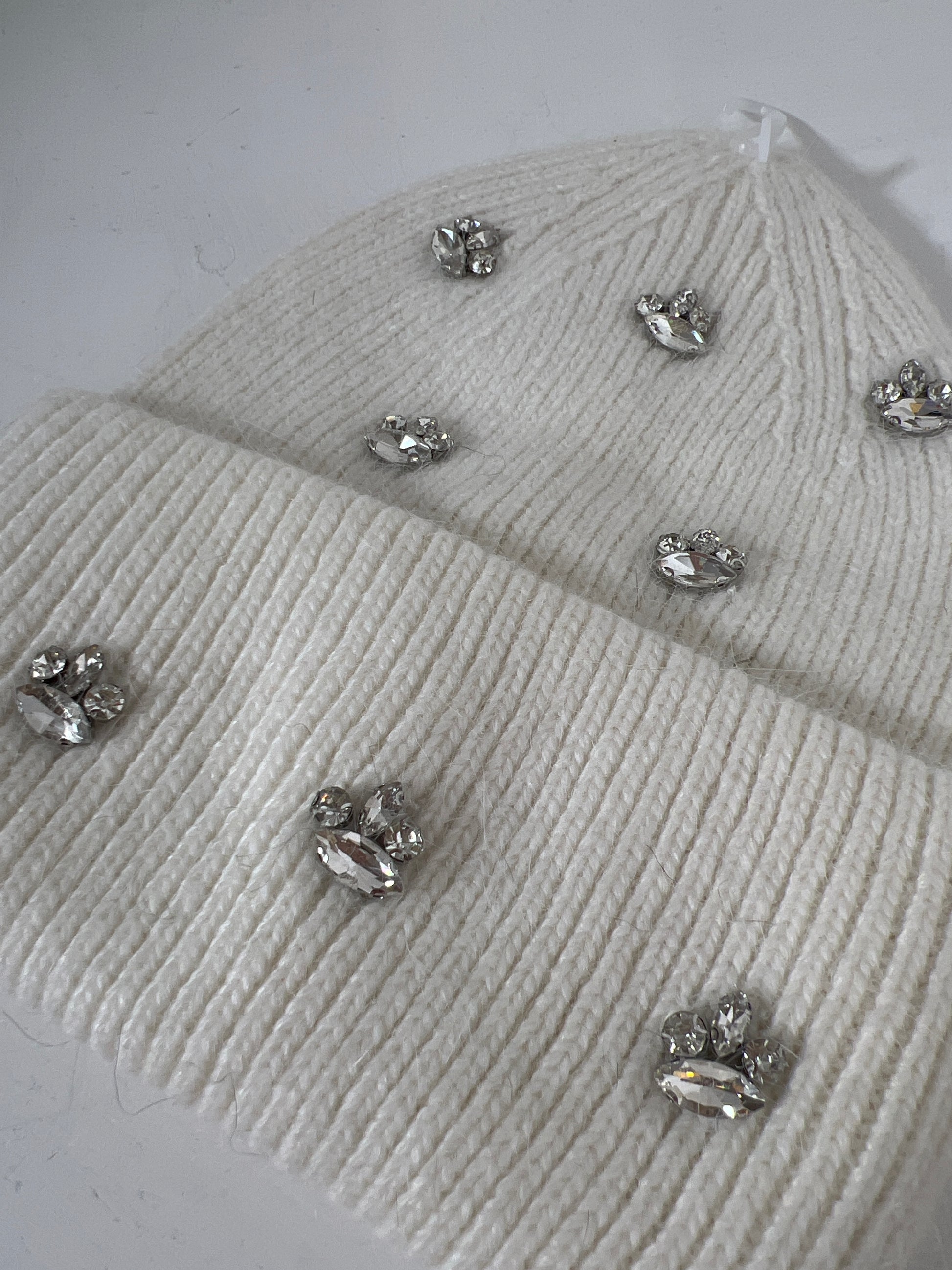 Cappello Swar Laila semplice e luminoso, impreziosito da applicazioni di cristalli che donano un tocco chic anche ai look più casual. Elasticizzato e in taglia unica è pratico e confortevole da indossare tutti i giorni.