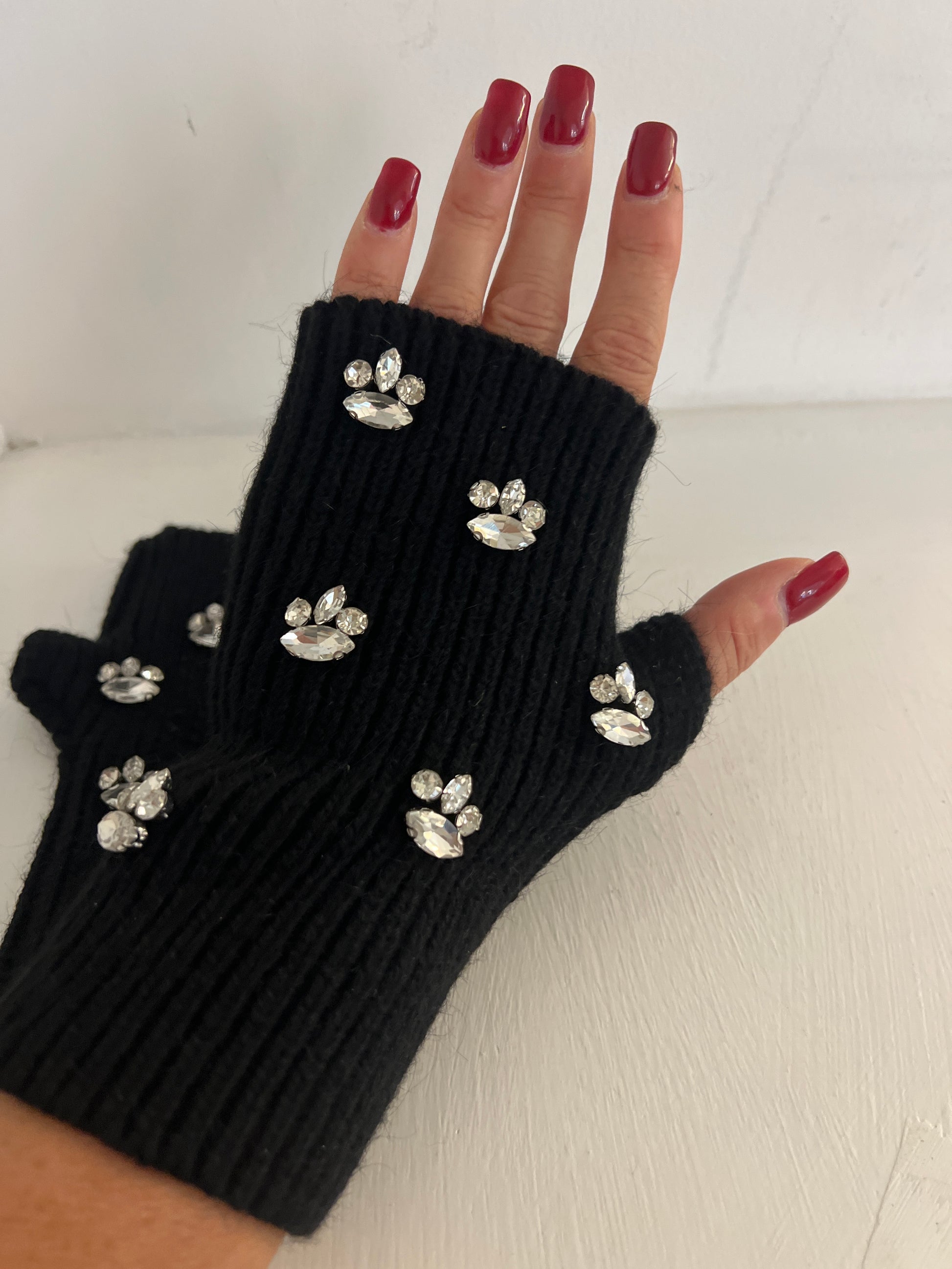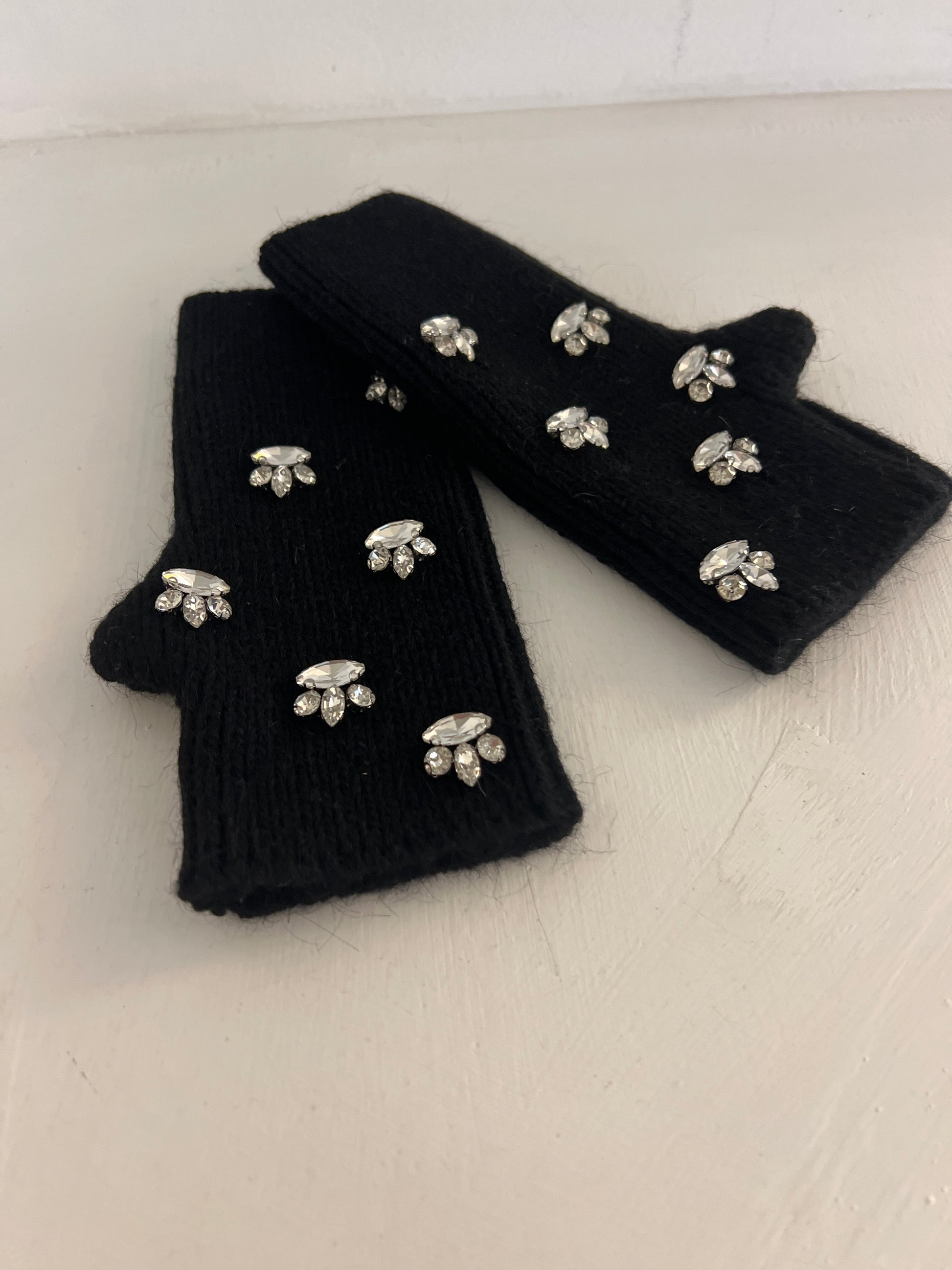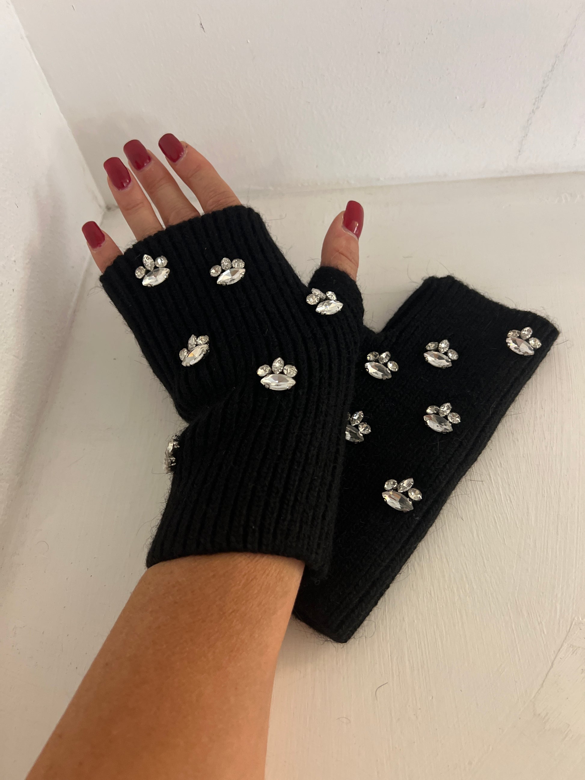 Guanti Swar Laila senza dita dallo stile moderno, arricchiti da applicazioni di cristalli che donano luce e raffinatezza.Elasticizzati tzglia unica, sono pratici e perfetti da abbinare al cappellino coordinato.