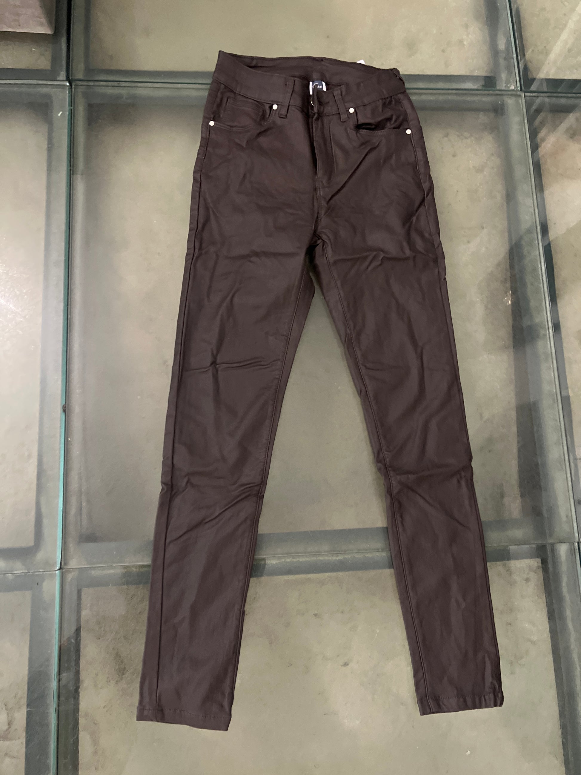 Il tessuto effetto ecopelle avvolge la gamba con morbidezza elastica, modellandola senza costrizioni, mentre le 5 tasche aggiungono un dettaglio funzionale e moderno.
