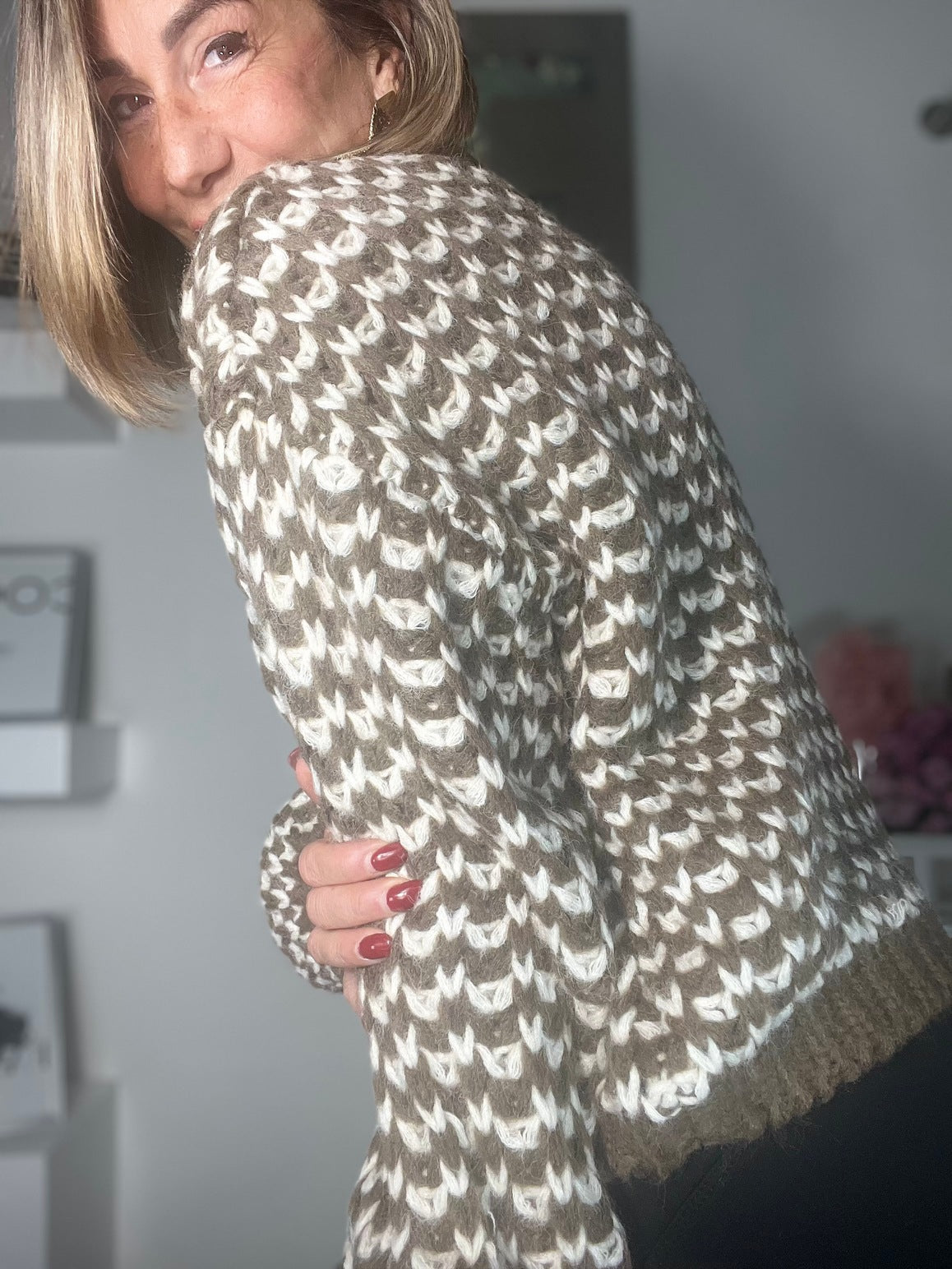 La trama ricca si sente sotto le dita, il taglio semplice esalta la femminilità senza sforzo: indossarlo è un picolo gesto comfort e stile quotidiano.