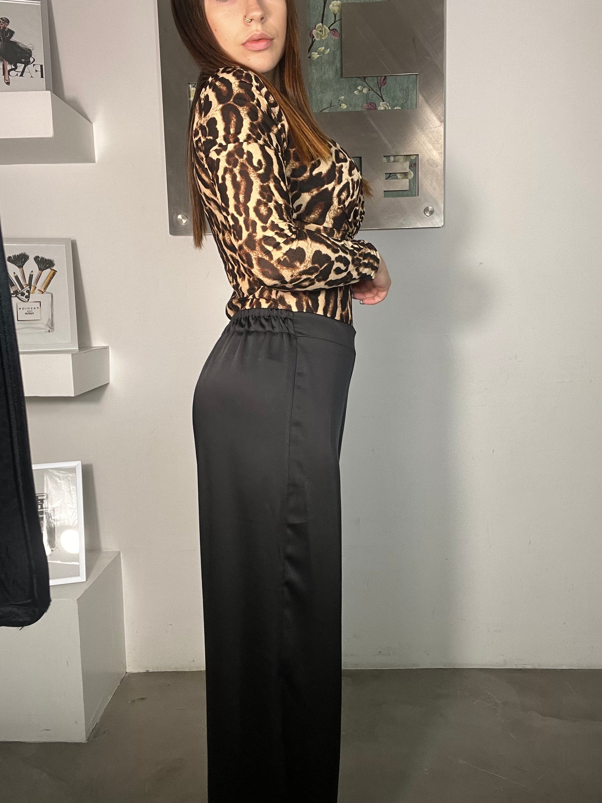 Pantalone Palazzo Pia a palazzo elastico in vita e coulisse