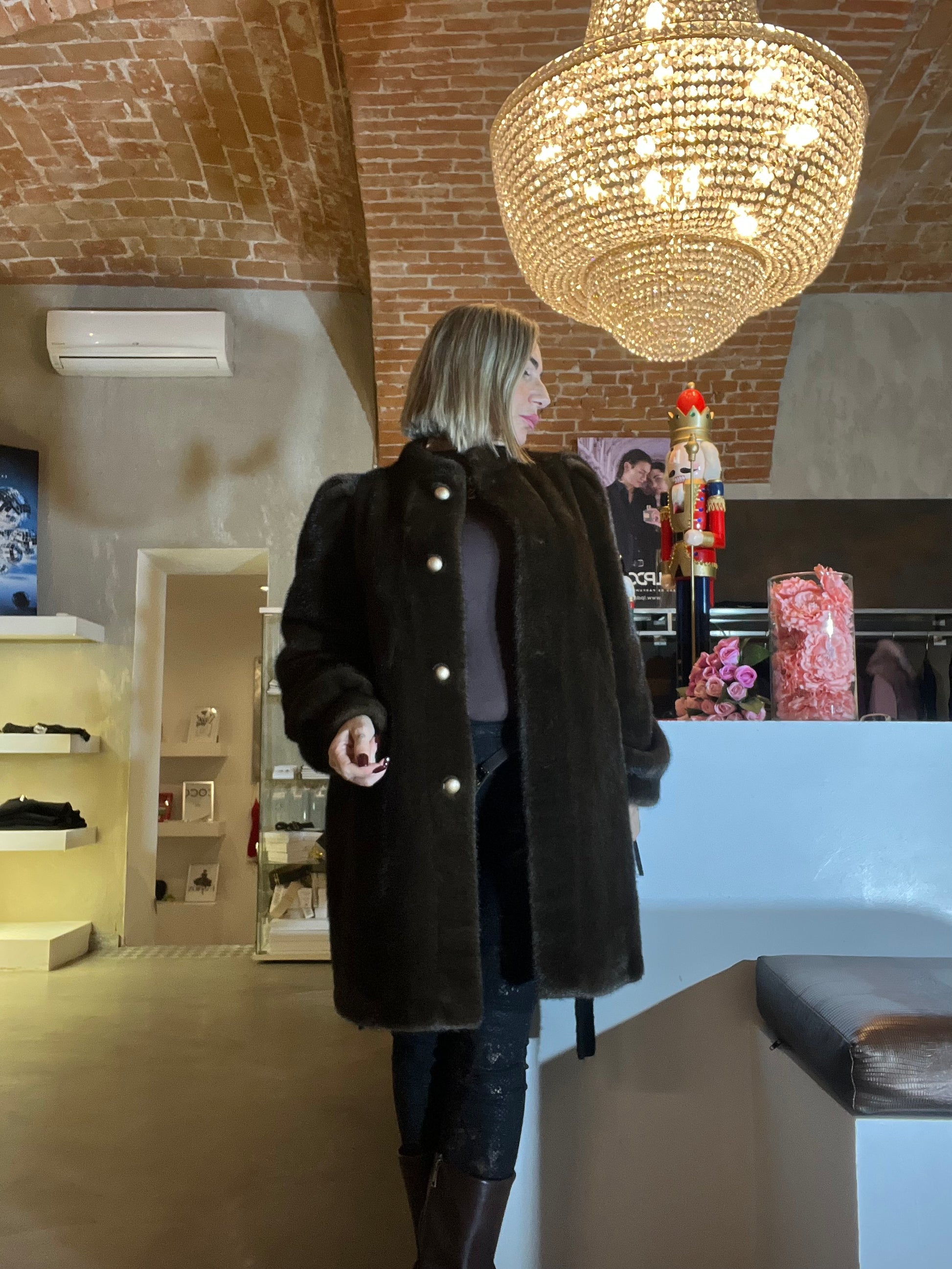 Avvolgiti nel lusso con la Pelliccia Genny, un capo statement che unisce eleganza senza tempo e comfort eccezionale. Perfetta per elevare ogni outfit invernale con stile sofisticato.