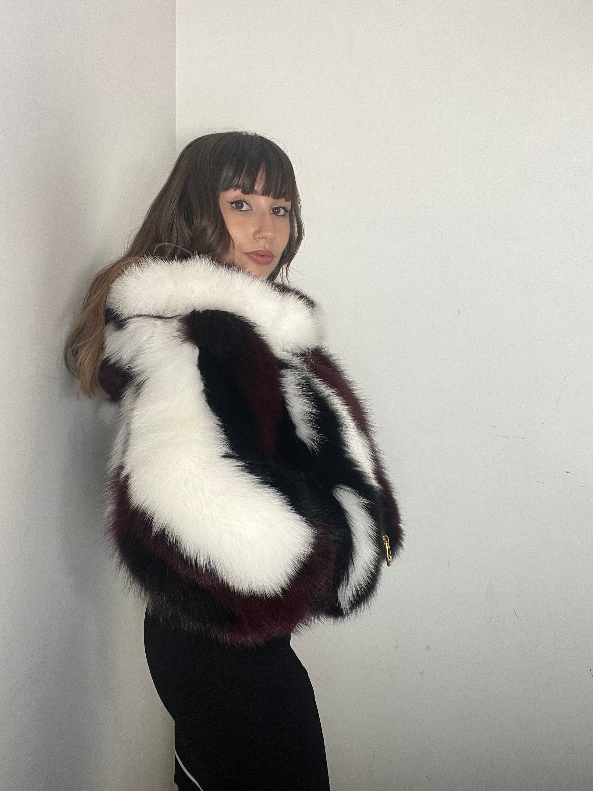 Pelliccia Vera Scopri l’esclusività in ogni dettaglio con questa pelliccia corta, realizzata interamente in volpe e arricchita da piccoli ritagli di colori diversi. Ogni capo è unico al mondo, con sfumature e dettagli che lo rendono irripetibile. Morbida, calda e incredibilmente lussuosa, valorizza ogni outfit con un tocco originale e sofisticato. Perfetta per chi ama distinguersi e celebrare la propria individualità. Aggiungila subito al tuo guardaroba e indossa un pezzo che non esiste in nessun altro luogo.